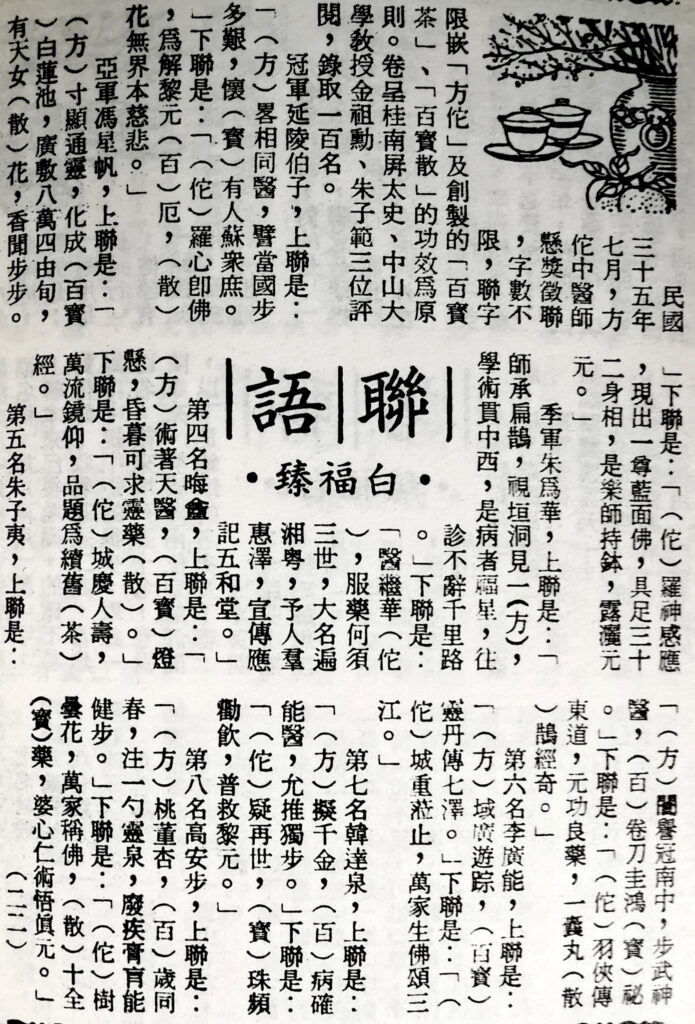 上接白福臻聯語(二○) 八名余照溥,對的...