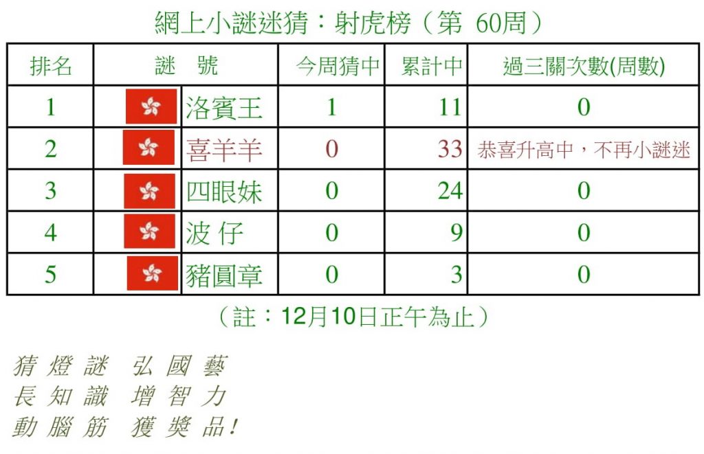 Continue Reading Previous 網上謎迷猜:第132周-射虎榜Next 網上謎迷猜:第133周 發佈留言 取消回覆發佈留言必須填寫的電子郵件地址不會公開。 必填欄位標示為 *留言 顯示名稱 * 電子郵件地址 * 個人網站網址 在瀏覽器中儲存顯示名稱、電子郵件地址及個人網站網址,以供下次發佈留言時使用。 More Stories 1 min read 燈謎文化站 燈謎迷 網上謎迷猜 網上謎迷猜:第388周 2025 年 12 月 12 日 admin 燈謎文化站 燈謎迷 網上謎迷猜 網上謎迷猜:第387周-射虎榜 2025 年 12 月 11 日 admin 1 min read 燈謎文化站 燈謎迷 網上謎迷猜 網上謎迷猜:第387周 2025 年 12 月 5 日 admin