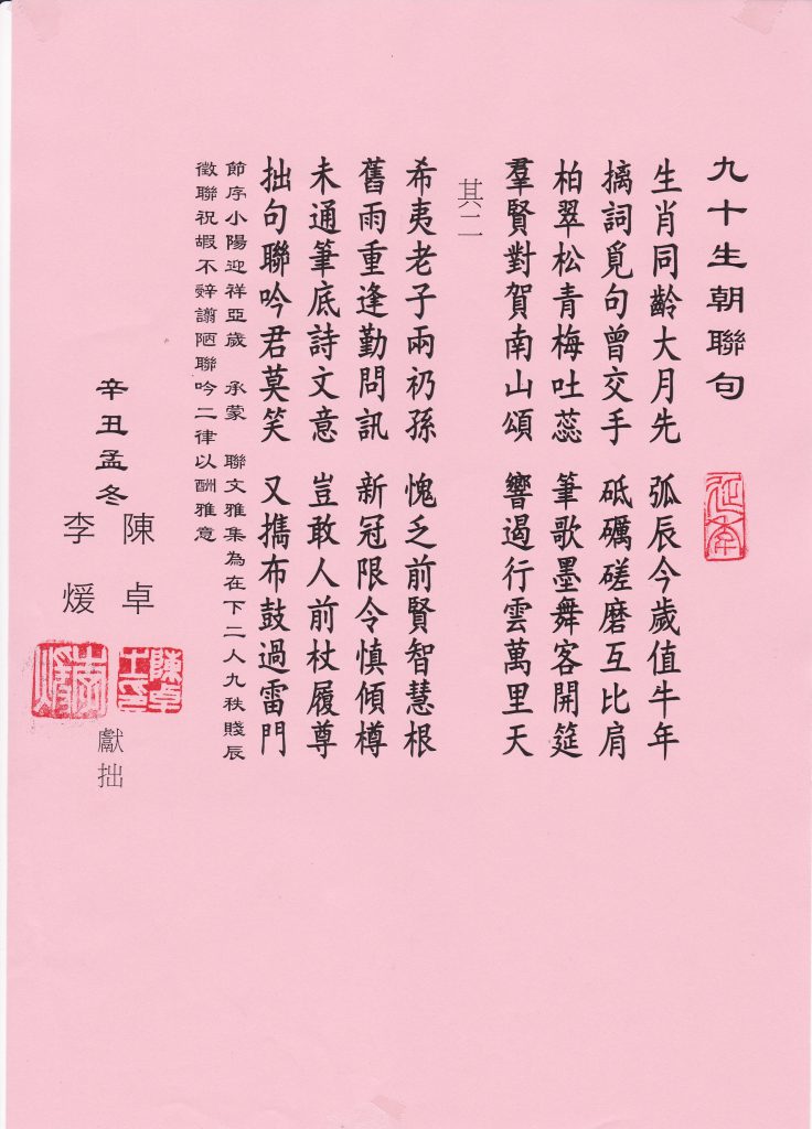 Continue Reading Previous 聯文雅集:第144會 頒獎聚餐Next 謎中乾坤- 1999/7-9 發佈留言 取消回覆發佈留言必須填寫的電子郵件地址不會公開。 必填欄位標示為 *留言 顯示名稱 * 電子郵件地址 * 個人網站網址 在瀏覽器中儲存顯示名稱、電子郵件地址及個人網站網址,以供下次發佈留言時使用。 More Stories 名聯共賞 基礎教室 對聯戀 文物檔案 轉載 白福臻聯語(六) 2025 年 12 月 14 日 admin 名聯共賞 基礎教室 對聯戀 文物檔案 白福臻主席其他作品 白福臻聯語(五) 2025 年 12 月 7 日 admin 名聯共賞 基礎教室 對聯戀 文物檔案 白福臻主席其他作品 白福臻聯語(四) 2025 年 11 月 30 日 admin