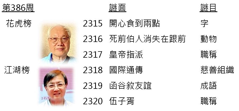 網上謎迷猜:第386周