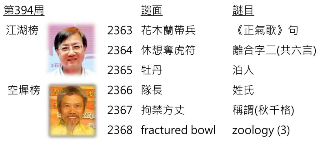 網上謎迷猜:第394周