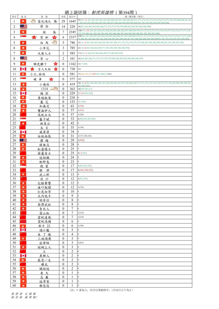 網上謎迷猜:第401周