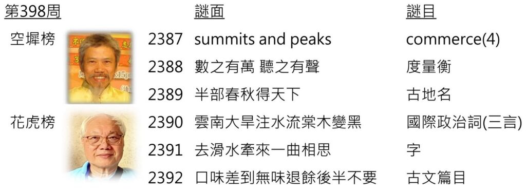 下星期二(二月廿四日)凌晨零時截止,下星期五(二月廿七日)公布猜中之謎迷與排名,以及下一周謎題。