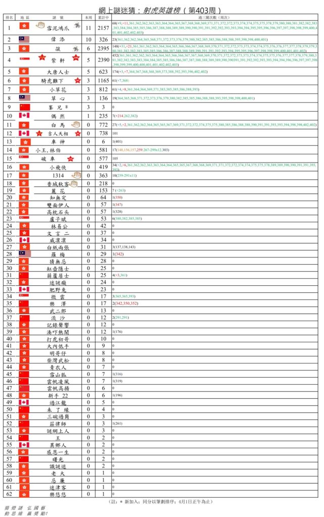Continue Reading Previous 預告:丙午夏季謎會 發佈留言 取消回覆發佈留言必須填寫的電子郵件地址不會公開。 必填欄位標示為 *留言 顯示名稱 * 電子郵件地址 * 個人網站網址 在瀏覽器中儲存顯示名稱、電子郵件地址及個人網站網址,以供下次發佈留言時使用。 More Stories 基礎教室 對聯戀 燈謎文化站 燈謎會 燈謎迷 頒獎聚餐 預告:丙午夏季謎會 2026 年 4 月 1 日 admin 1 min read 燈謎文化站 燈謎迷 網上謎迷猜 網上謎迷猜:第403周 2026 年 3 月 27 日 admin 燈謎文化站 燈謎迷 網上謎迷猜 網上謎迷猜:第402周-射虎榜 2026 年 3 月 26 日 admin
